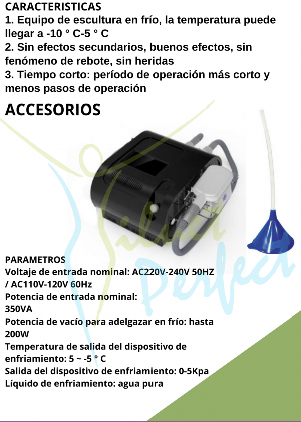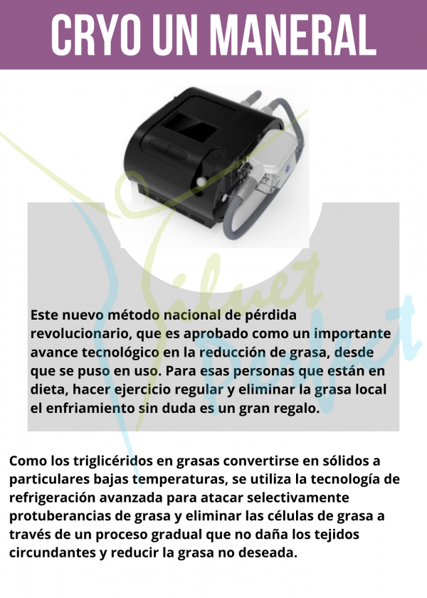 Este nuevo m?todo nacional de p?rdida revolucionario, que es aprobado como un importante avance tecnol?gico en la reducci?n de grasa, desde que se puso en uso. Para esas personas que est?n en dieta, hacer ejercicio regular y eliminar la grasa local el enfriamiento sin duda es un gran regalo. Para las partes de grasa m?s dif?ciles y pocas partes, tales como las llantitas(costado) y grasa de la espalda (Grasa suelta encima de la cadera en ambos lados de la cintura), el vientre y la grasa de la espalda, la operaci?n de refrigeraci?n puede producir resultados impresionantes.